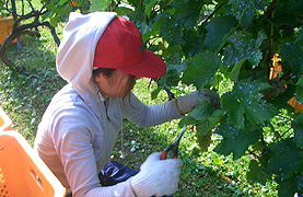 9月中旬頃から、セイベルから始まり山ぶどう、ヤマ・ソービニオン、甲州と10月下旬まで行われ ます。